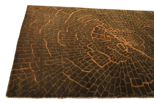 Alfombra moderna marrón fina hecha a mano de 4'x6'