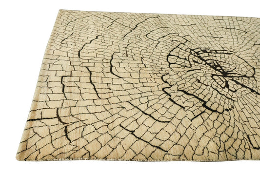 Alfombra moderna de color crema fina hecha a mano de 4'x6'