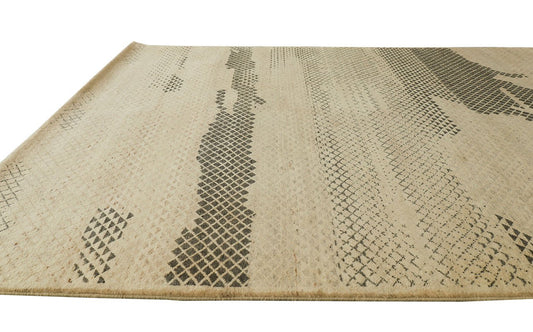 Alfombra fina Jett blanca y negra hecha a mano de 9'x12'