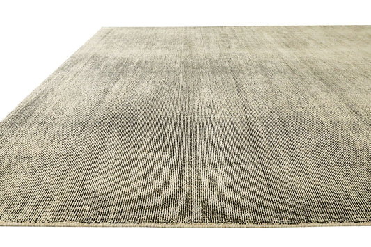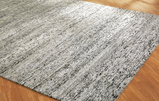 Alfombra de lana y seda sintética anudada a mano Elements EL-860 de tweed gris
