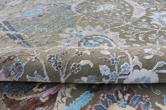 Alfombra Indo Fine de lana y seda oxidada, hecha a mano, de 2,7 x 3,6 m