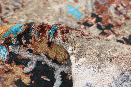 Alfombra de lana y seda fina, hecha a mano, con textura colorida, de 2,7 x 3,6 m