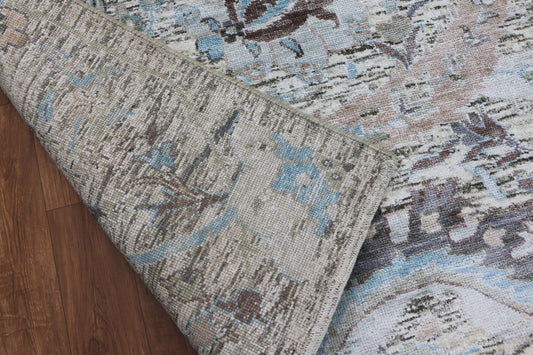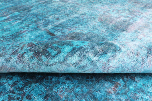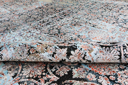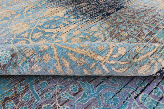 Alfombra fina de lana y seda oxidada de color azul, hecha a mano, de 2,7 x 3,6 m