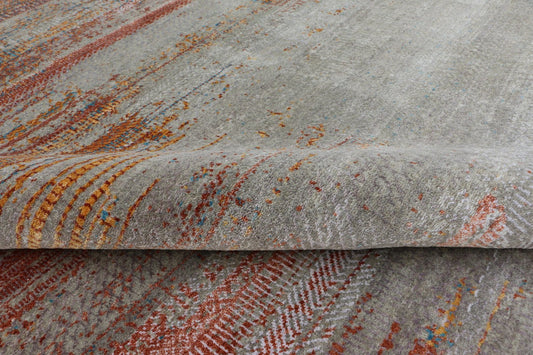 Alfombra moderna, fina, hecha a mano, de lana y seda oxidada de 8'x10'