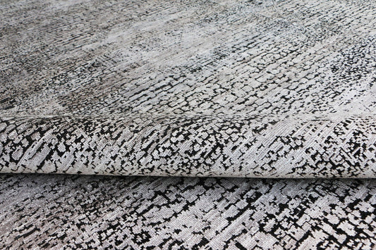 Alfombra de seda sintética anudada a mano Elements EL-856 gris jaspeado