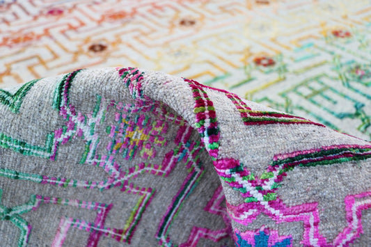 Alfombra contemporánea fina y colorida hecha a mano de 8'x10'