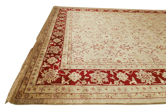 Alfombra Zeigler de 1,83 m x 2,75 m, fina, hecha a mano, color marfil y dorado