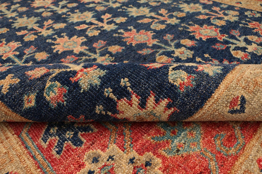Alfombra Anaar azul fina hecha a mano de lana y seda de 8'x10'