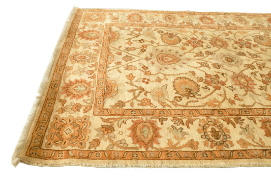 Alfombra tradicional fina Tanjania color crema de 4'x6' hecha a mano