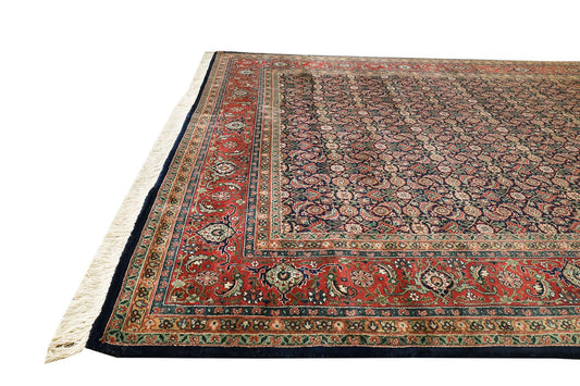 Alfombra fina Herati azul oscuro y óxido, hecha a mano, de 8'x10'