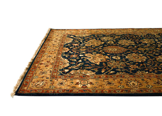 Alfombra fina Moghul azul oscuro y óxido, hecha a mano, de 8'x10'