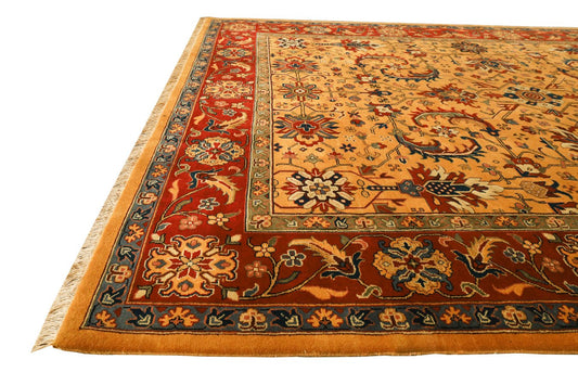 Alfombra Kaveh Gold & Rust fina hecha a mano de 8'x10'