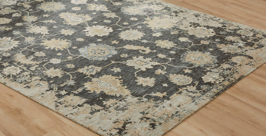 Alfombra de lana tejida a máquina Oushak color gris perla Blooma BM1376