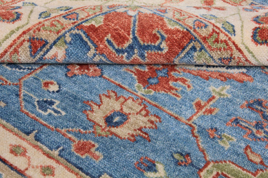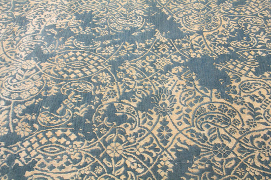 Alfombra personalizada de lana anudada a mano azul Heriz de 8'x12'