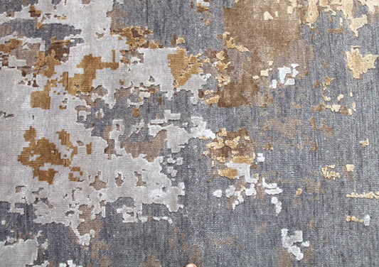 Alfombra moderna de lana y seda anudada a mano, color gris cobre beige, de 2,7 x 3,6 m, hecha a medida