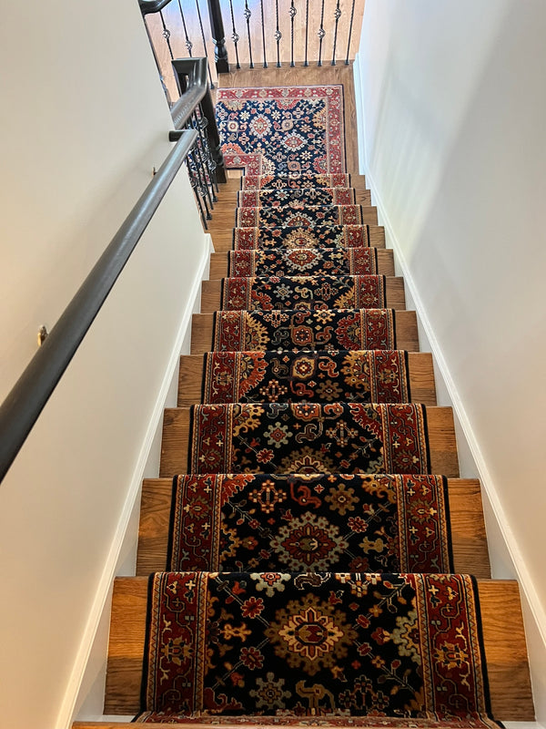 Production time depends on the length and density of the runner. Rugs with higher knot density or intricate details take longer to produce. We have many long runners in stock, ready to start your project immediately. In cases where specific sizes aren’t available, we begin custom fabrication right away. It’s best to plan ahead so your stair runner is ready when your stairs are — whether during a remodel or move-in.